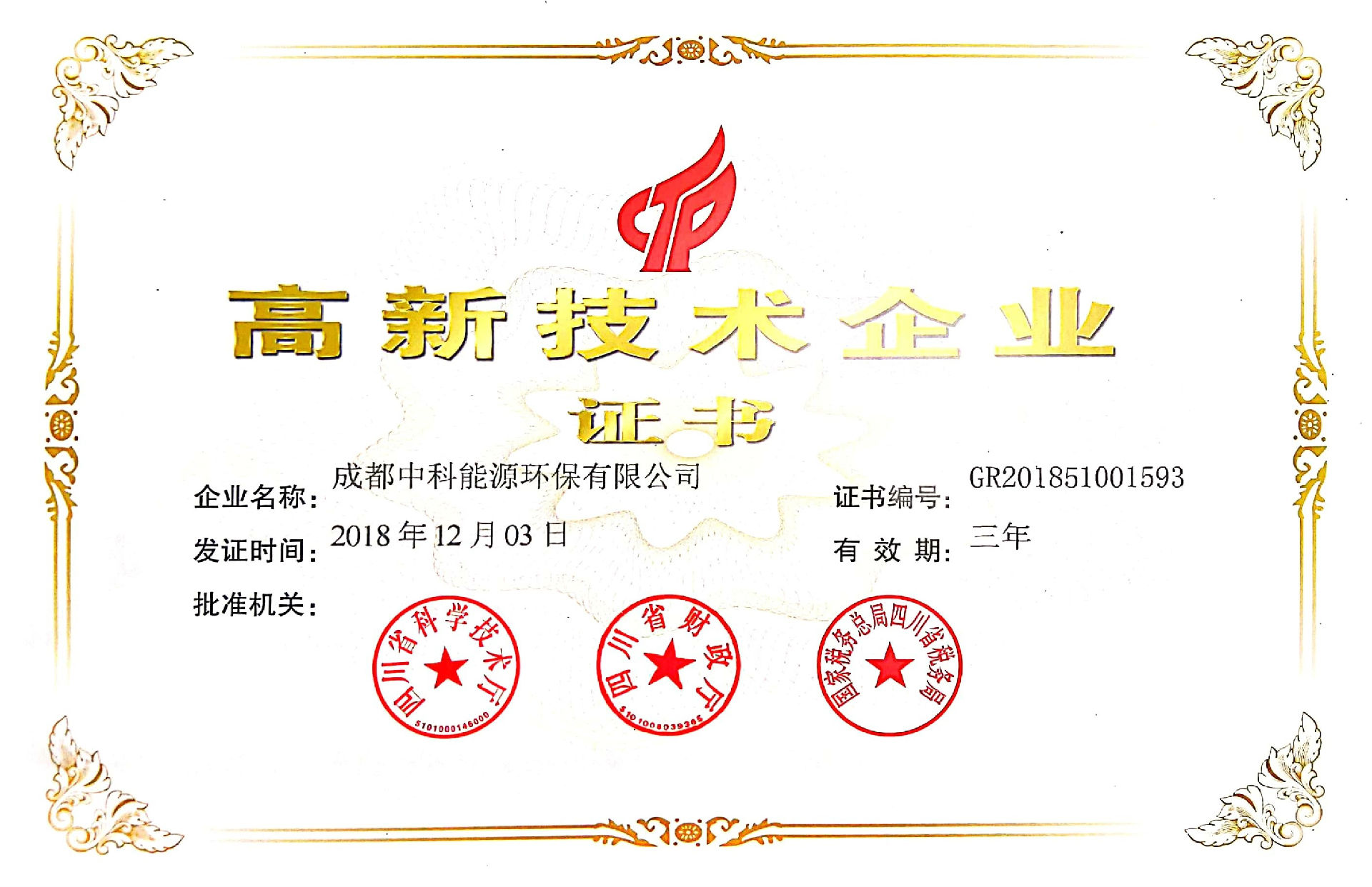 喜讯!成都中科能源环保有限公司再获国家级高新技术企业认定! 自成立以来,中科能环始终秉持技术创新理念,提升公司核心竞争力。此次高新技术企业成功认定是国家对我公司高技术发展极大的肯定。中科能环有信心在技术发展路上再接再厉、不断前行!上一条:固废事业部召开2019年开年工作交流会下一条:“双碳”战略下的变革...