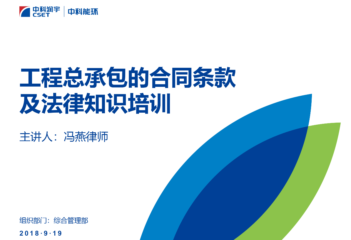 2018年9月19日,公司邀请法律顾问北京德恒律师事务所的冯燕律师开展了主题为“工程总承包合同条款和法律风险”的培训,公司员工参加了培训。 本次培训中,冯燕律师全面细致地阐述了工程总承包类型及概况,EPC模式法律风险分析及防范,分包合同主体法律风险分析,费率招标下的合同法律风险,合同安全质量管理条款风险,合同结算与工程款支付条款风险,设计合同、专业分包合同与劳务...