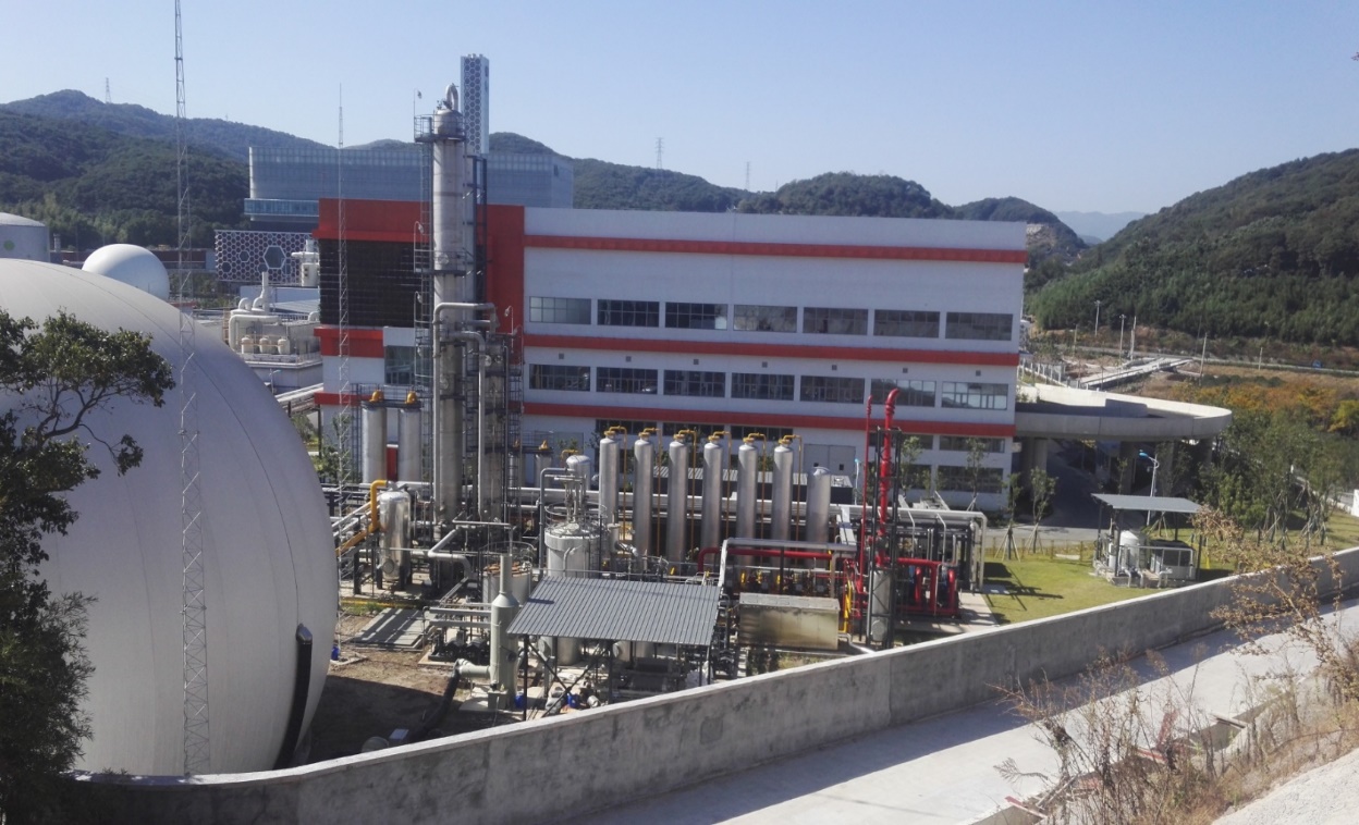 装置规模:55000Nm3/d,一期设计沼气处理规模,日处理量55000m3/d,小时处理量2500m3/h(考虑10%的富裕能力),三路气源气量厨余厂厌氧沼气量33500m3/d,污水沼气量3500m3/d,餐厨厂厌氧沼气量18000m3/d。利用餐厨垃圾、厨余垃圾、污水处理产生的沼气经净化、提纯精制后得到满足天然气二类标准(GB17820-2012)的城镇燃气并入宁波市城镇燃气管网。